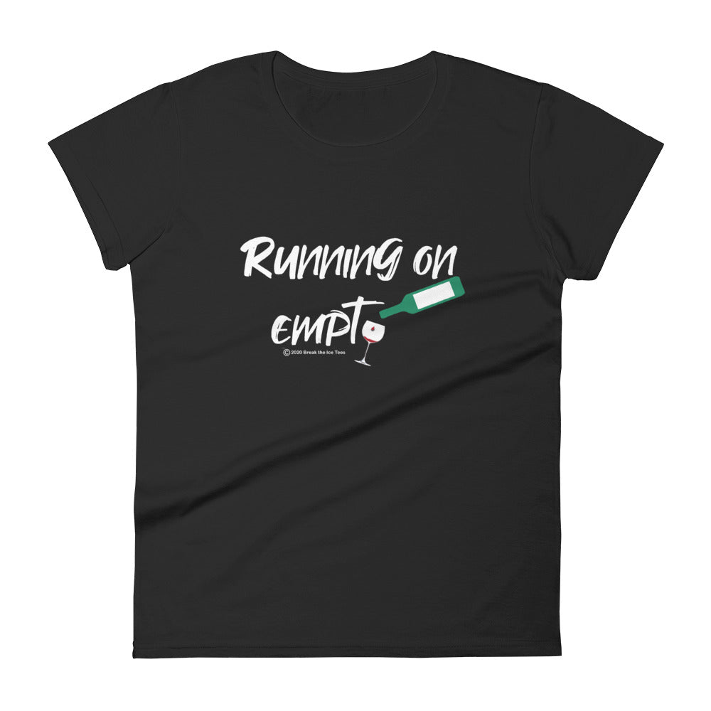 Uh oh! Your wine glass is empty! And so is the bottle. What to do? We hope one of your wine loving friends has a "backup plan." Come to the the next party prepared to share a few laughs with them in our "Running on Empty" custom Wineteesers Brand graphic t-shirt.